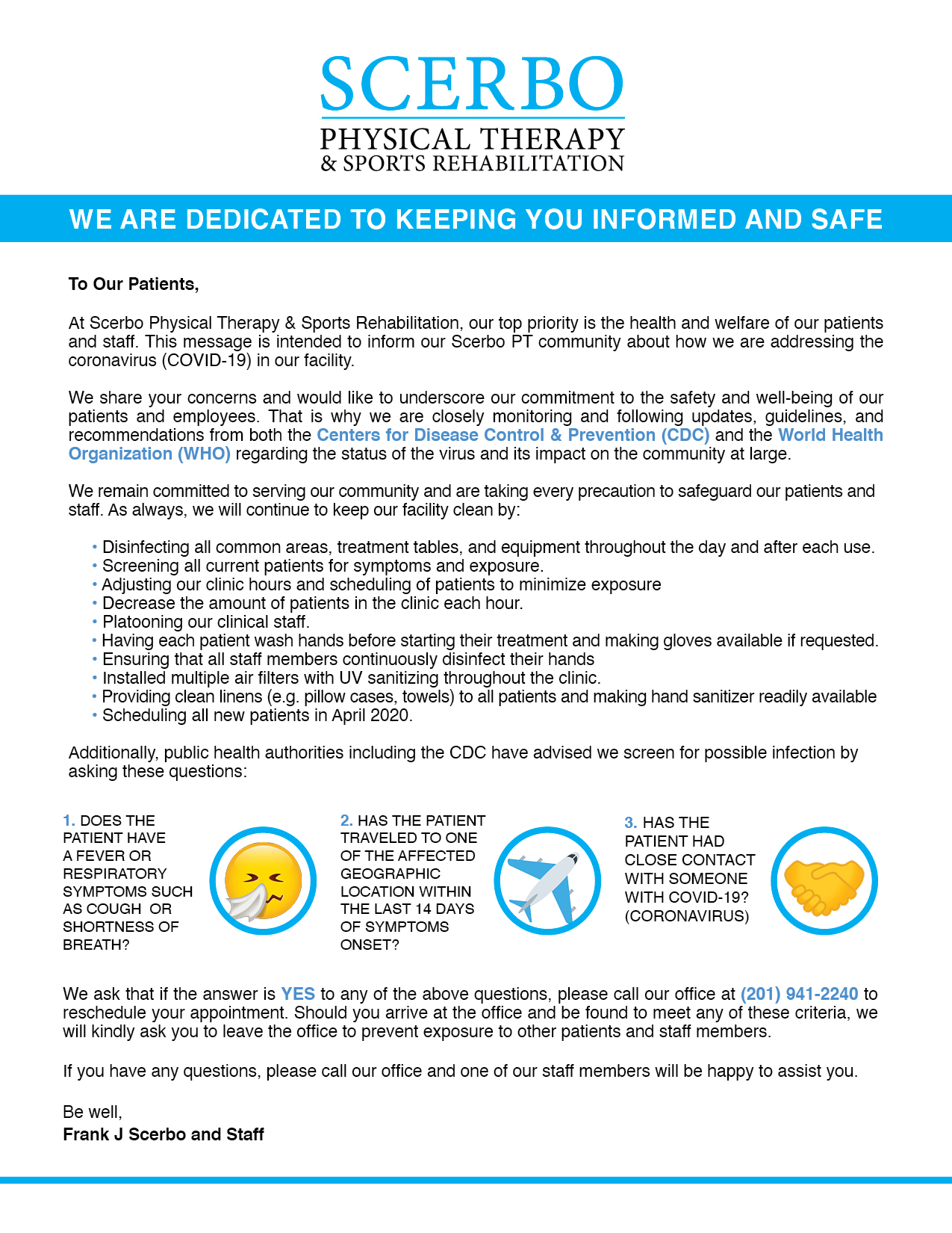 Scerbo Coronavirus Message